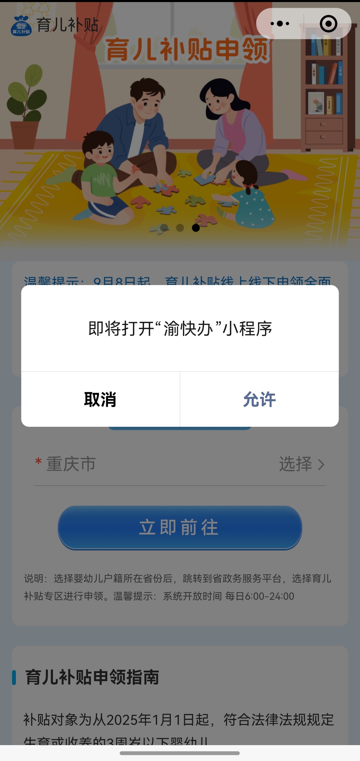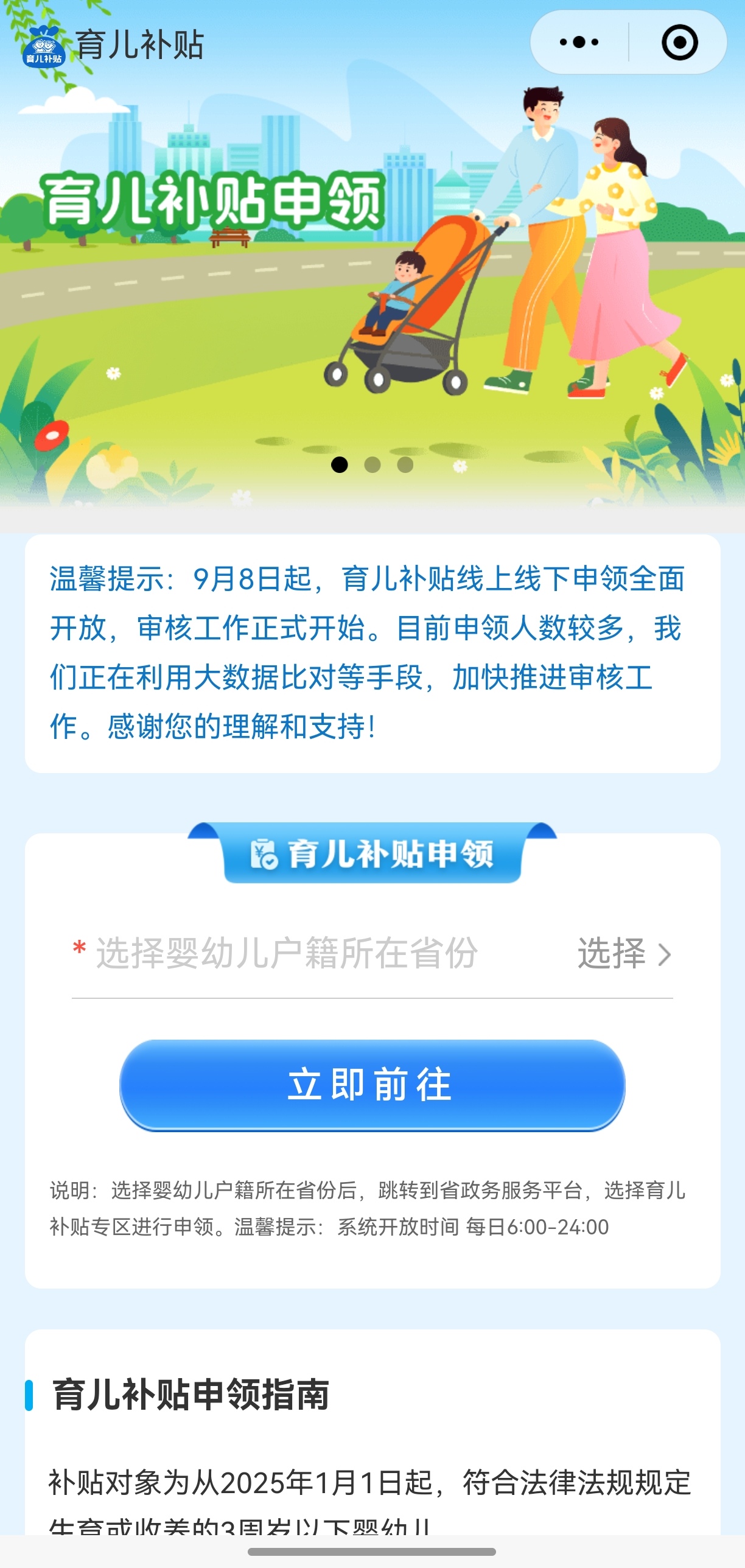 为贯彻落实党中央关于完善生育支持政策体系和激励机制的决策部署,推动建设生育友好型社会,根据中共中央办公厅、国务院办公厅《关于印发《育儿补贴制度实施方案》的通知》的工作要求,我市于9月8日已正式启动了育儿补贴个人申领。